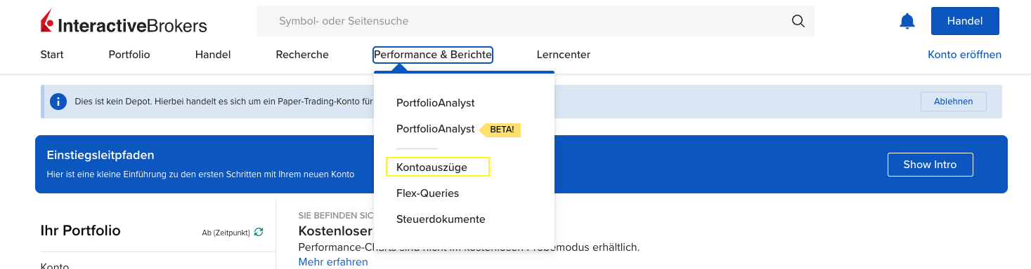2. Anschließend über Performance & Berichte auf Kontoauszüge.