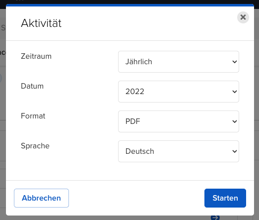 6. Im letzten Schritt ist als Zeitraum jährlich und als Dateiformat PDF auszuwählen.