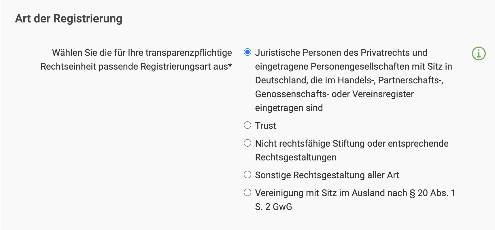 - Typ des Berechtigten → Meist tatsächlich wirtschaftlich berechtigter (außer eventuell bei Stiftungen)