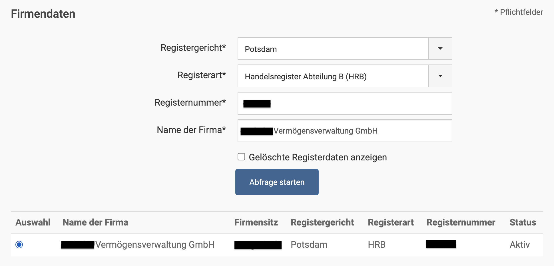 Schritt 4: Wähle die Registerzuordnung → Handelsregister