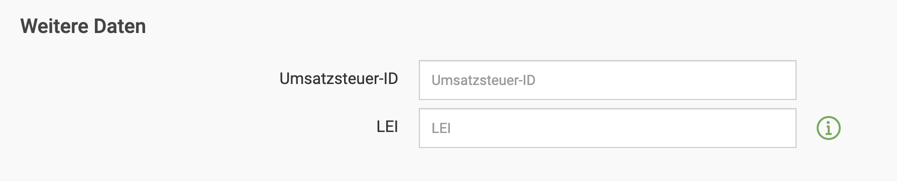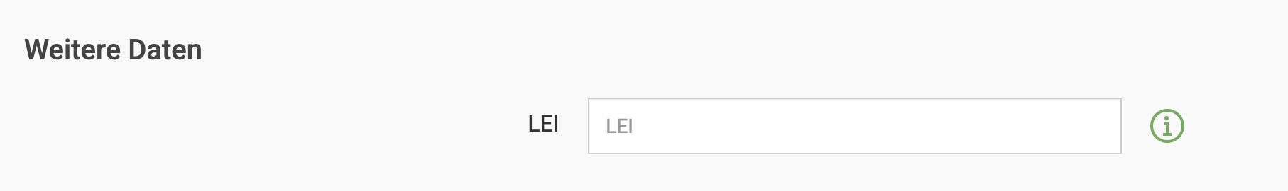Optional LEI angeben, wenn bereits beantragt (Ansonsten frei lassen)