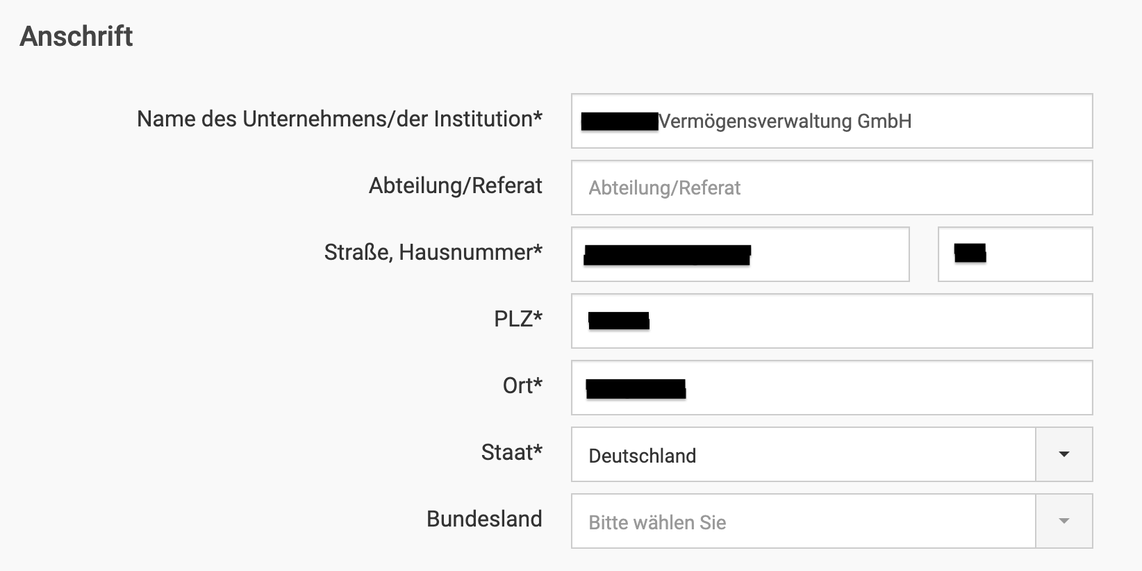 Schritt 5: Trage die Firmendaten ein (Achtung bei HR Nummer ohne HRB Zusatz angeben)