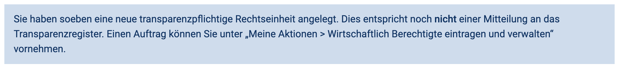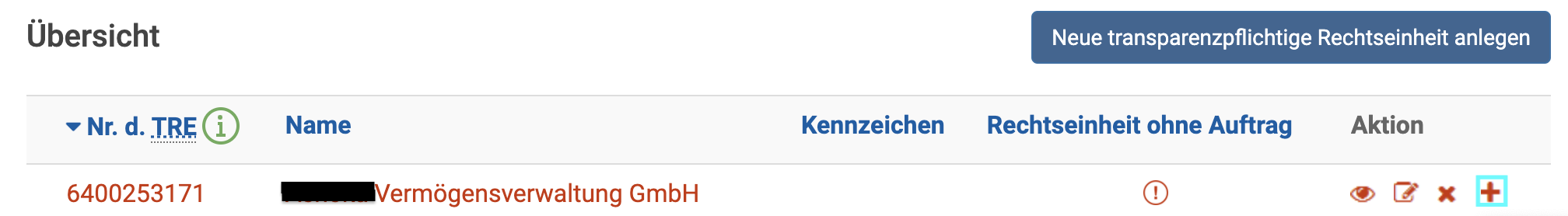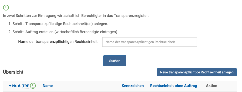 Schritt 2: Gehe auf die Startseite und klicke auf "Neue transparenzpflichtige Rechtseinheit anlegen"