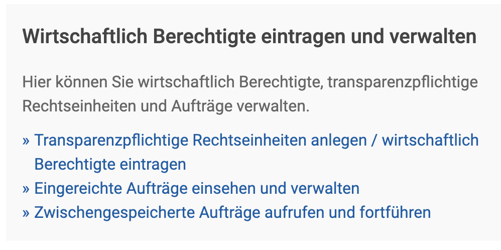 Das mit dem Geldwäschegesetz (GwG) im Jahr 2017 eingerichtete Transparenzregister erfasst die wirtschaftlich Berechtigen.
