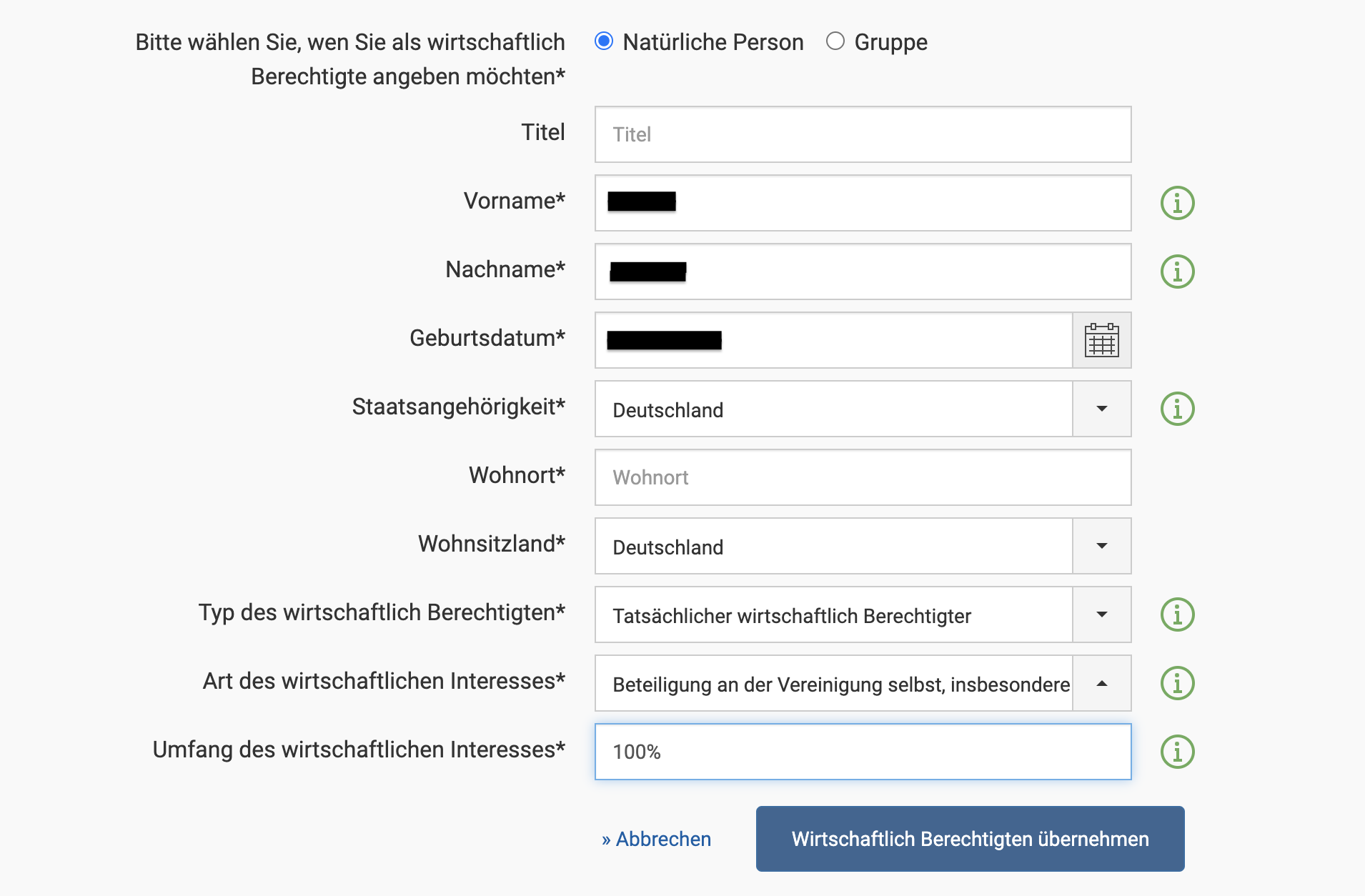 Schritt 11: Trage die wirtschaftlich berechtigten Personen ein.