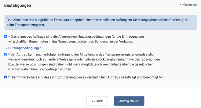 der registerführenden Stelle zur Eintragung in das Transparenzregister mitzuteilen.