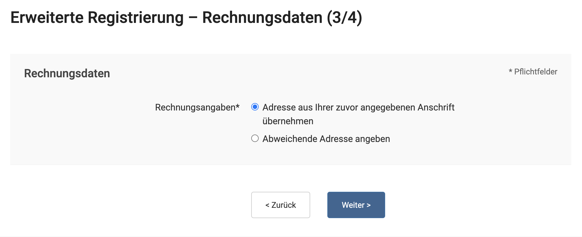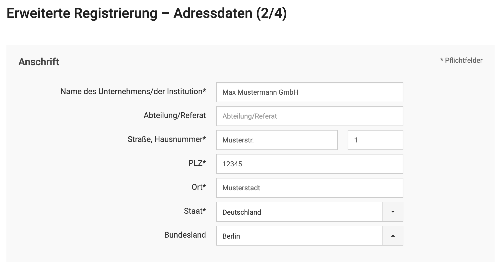 Fülle nach der Registrierung mit deiner E-Mail Adresse die erweiterte Registrierung aus: