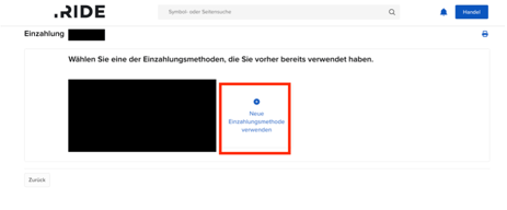 6.) Klicke auf „Neue Einzahlungsmethode verwenden“