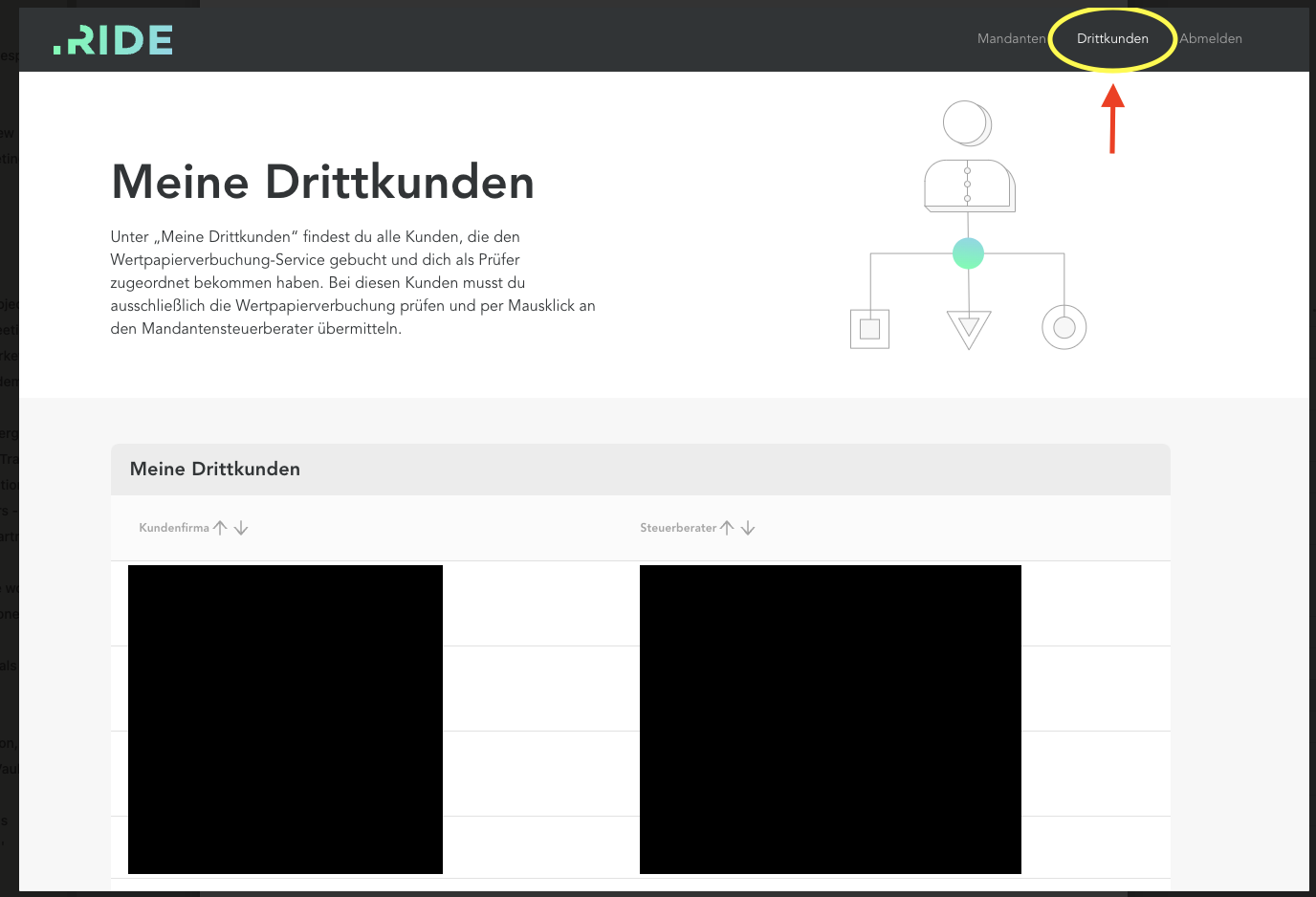 1. Im Account einloggen und auf „Drittkunden" klicken.