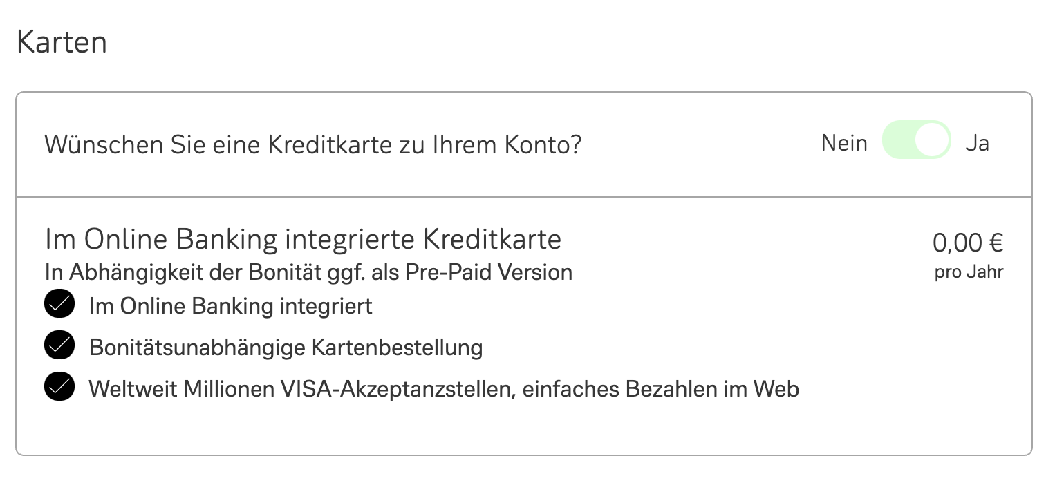 Es kann zusätzlich eine Kreditkarte bestellt werden für das Geschäftskonto.