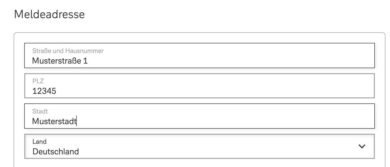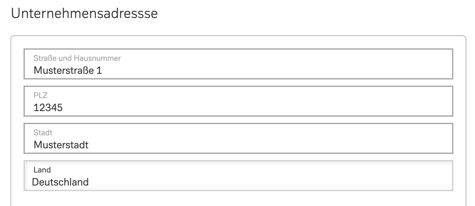 Zusätzlich muss die Unternehmensadresse angegeben werden: