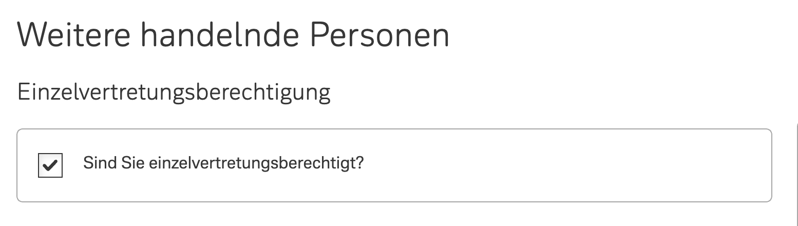 6. Falls weitere Geschäftsführer vorhanden sind, müssen diese jetzt eingefügt werden. Wenn nicht, wird das Kästchen zur Einzelvertretungsbefugnis angeklickt.