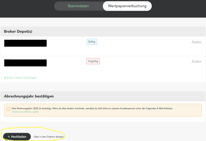 Nach der Anbindung Ihres Broker-Depots an die automatisierte Wertpapierverbuchung bitten wir Sie, den sogenannten Jahresdepotauszug einmal jährlich in Ihrem FELSFO Account hochzuladen.