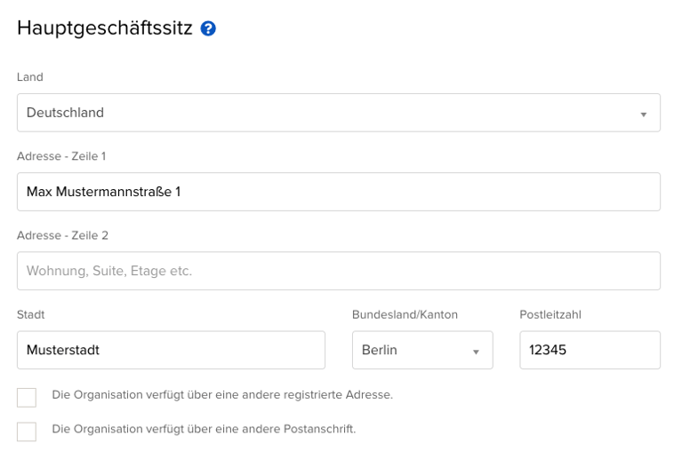 Schritt 6: Gib den Sitz der Gesellschaft an.