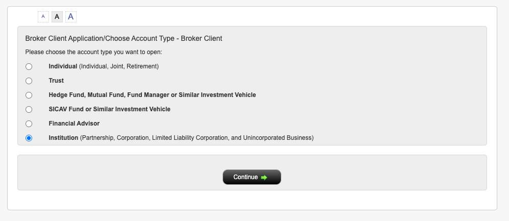 Schritt 2: Wähle als Account-Typ "Institution" aus.