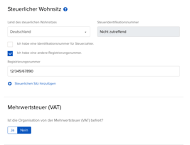 Schritt 7: Trage die Steuernummer deiner GmbH ein. Du kannst hier beide Punkte auswählen, um die Steuernummer einzutragen, meistens wird im ersten Punkt diese aber als ungültig bezeichnet. Auch wenn vermögensverwaltende GmbHs in der Regel umsatzsteuerbefreit sind, wird auch hier bei der Mehrwertsteuer "Nein" angeklickt, da es bei FXFlat keine automatische Steuerabführung gibt und der Punkt somit zu vernachlässigen ist.