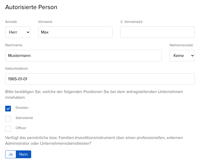 Schritt 10: Füge die Daten der autorisierten Person ein.