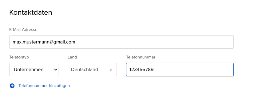 Schritt 1: Gib deine Kontaktdaten ein und wähle als Kundenart "Firmenkonto" aus.