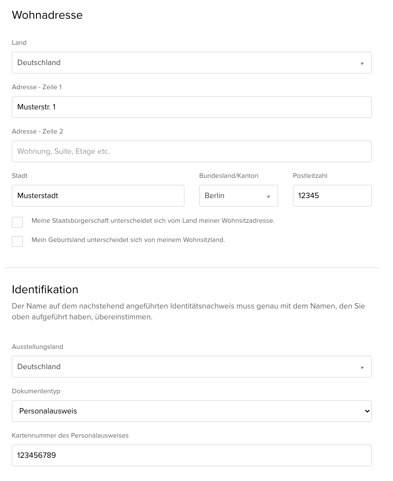 Schritt 11: Trage deine Wohnadresse ein und die Nummer deines Personalausweises oder Reisepasses.