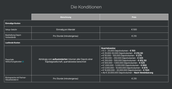 - Einer Verbuchungspauschale abhängig vom Depotwert