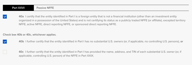 Folgende Felder müssen ausgefüllt werden: Der FATCA Status ist "Passive NFFE":